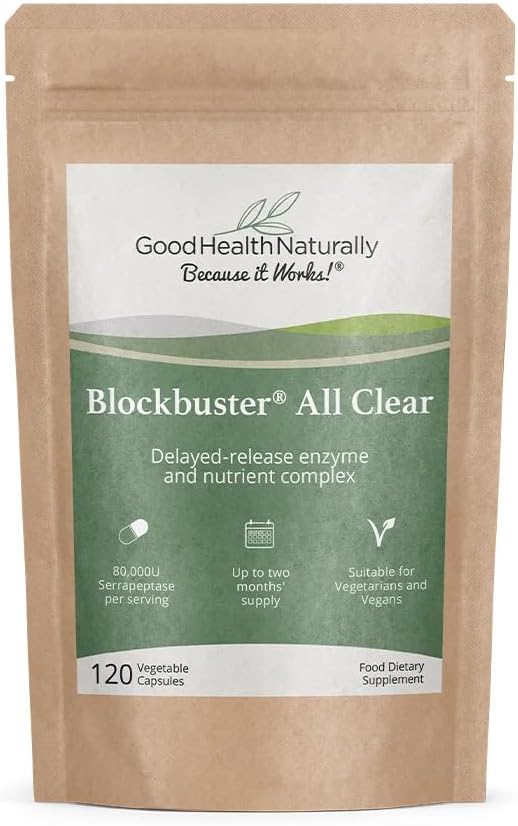 BlockBuster AllClear is, by any measure, the best and most powerful enzyme formula available, but we don’t stand still where your health is concerned. We decided to make it even more powerful. BlockBuster AllClear is used by those who want the greatest help with their health. Our research showed that even though BlockBuster AllClear is superb, we could improve it even further, and so we made the following changes: The careful blend of powerful enzymes such as Serrapeptase, Nattokinase, Digestive Enzyme, antioxidants and proanthocyanidins such as Grape Seed Extract and Pycnogenol are now in a delayed release capsule – meaning this is perfect for those requiring the highest level of support for their health or just long term maintenance. Statements regarding dietary supplements have not been evaluated by the FDA and are not intended to diagnose, treat, cure, or prevent any disease or health condition.