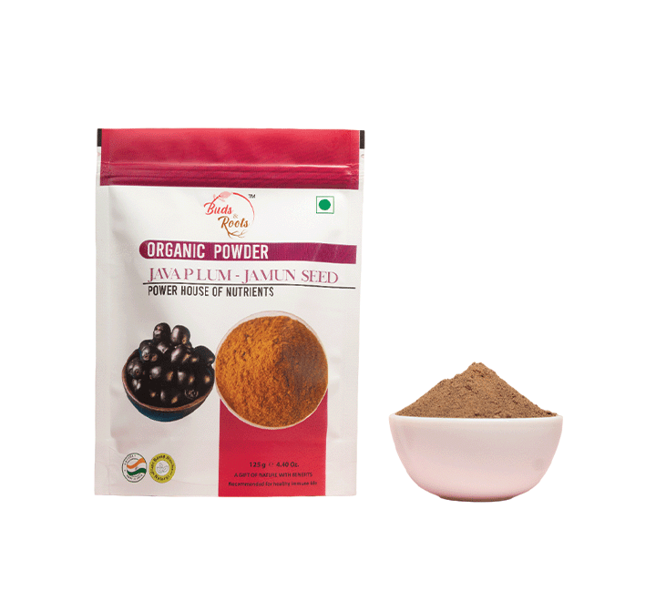 Java Plum Seed Powder, also known as Jamun Seed Powder, by Buds & Roots is a nutrient-rich, organic product made from the seeds of the Java Plum (Jamun) fruit. It offers a range of health benefits, making it a valuable addition to a daily wellness routine. Here’s a closer look at its qualities: