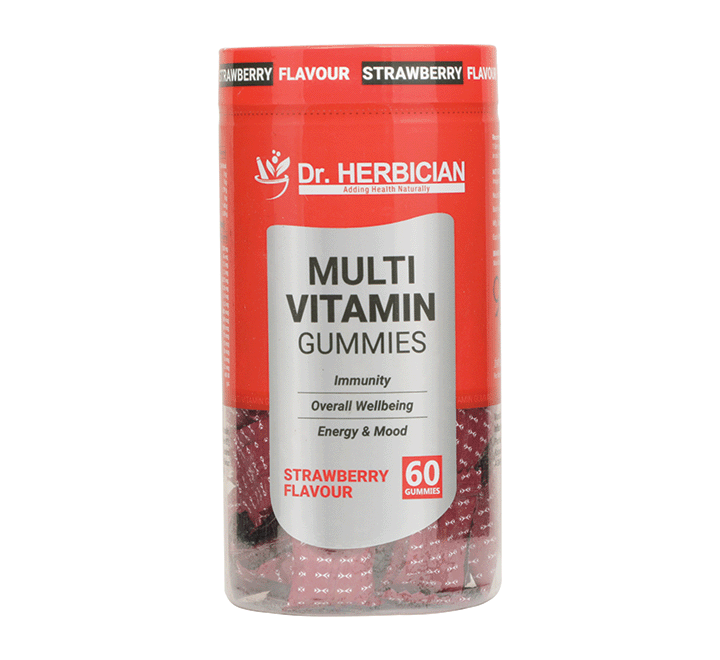 Dr. Herbician Multivitamin Gummies in Strawberry flavour provide a comprehensive blend of essential vitamins and minerals to support daily health and vitality. These tasty multivitamin gummies are formulated with key nutrients, including vitamins A, C, D, and E, along with B vitamins and minerals, making them perfect for filling nutritional gaps in a convenient and enjoyable way. The strawberry-flavoured multivitamin gummies are a hit with both adults and kids, making it easy to maintain a consistent vitamin regimen for whole-body wellness. Ideal for immune support, energy, and skin health, these multivitamin gummies ensure you receive the daily nutrients your body needs.