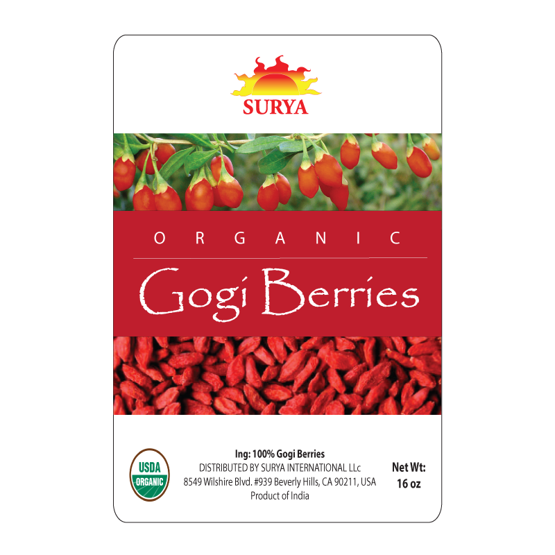 Surya’s premium goji berries are organic, kosher, and gluten-free and handled with purpose and care to preserve their vital super food ingredients.